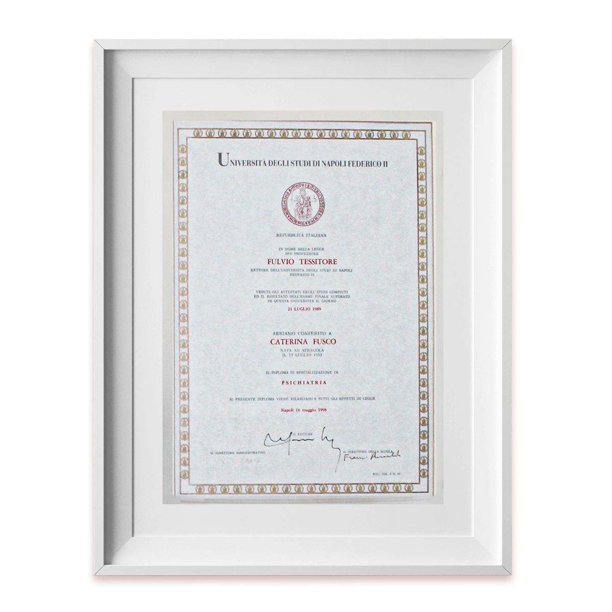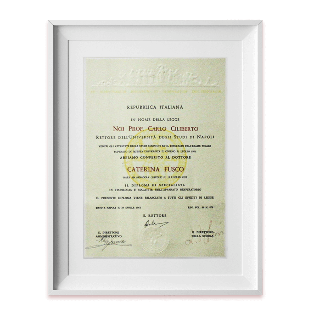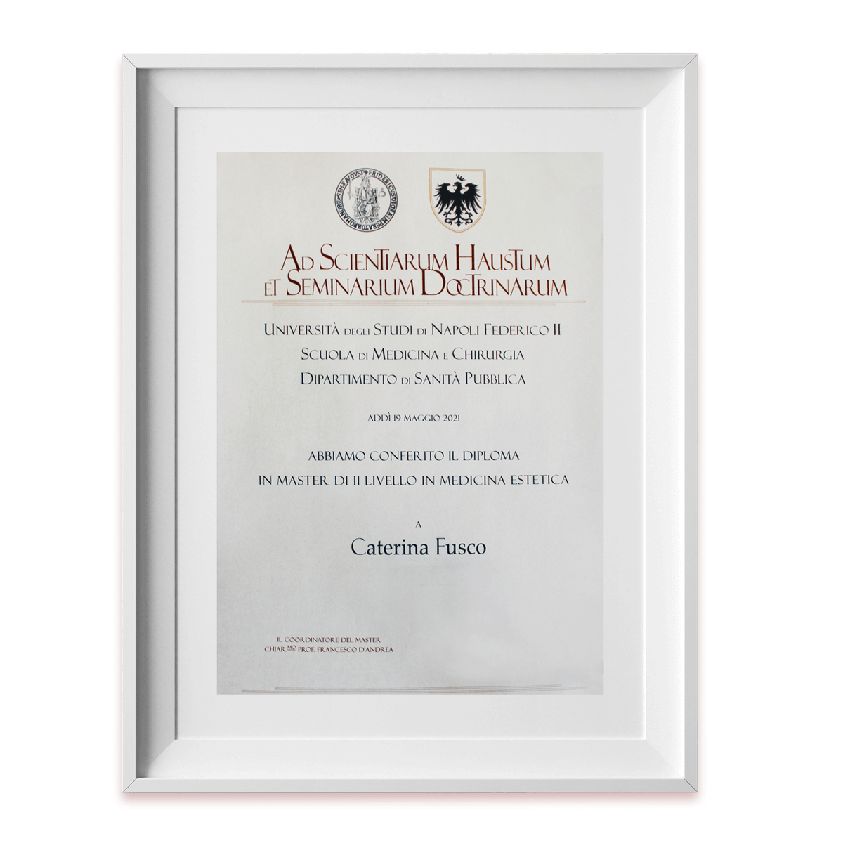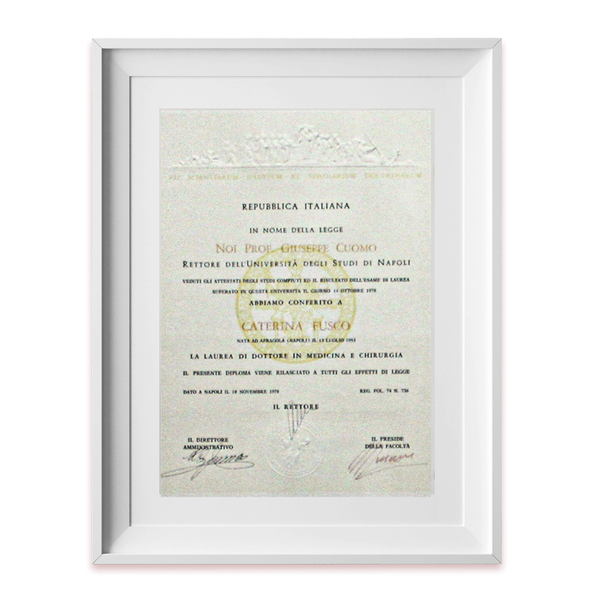 La dott.ssa Caterina Fusco, laureata con 110/110, medico estetico, è anche psichiatra e psicoterapeuta cognitivo comportamentale con esperienza trentennale. Questa sua qualifica le consente di comprendere maggiormente i bisogni dei pazienti rivolti a conseguire quell’armonia mente/corpo finalizzata allo star bene con sé stessi. A volte basta l’eliminazione di un piccolo difetto fisico per riconquistare la sicurezza e la fiducia in sé stessi e migliorare, nel contempo, lo stato di salute interiore.